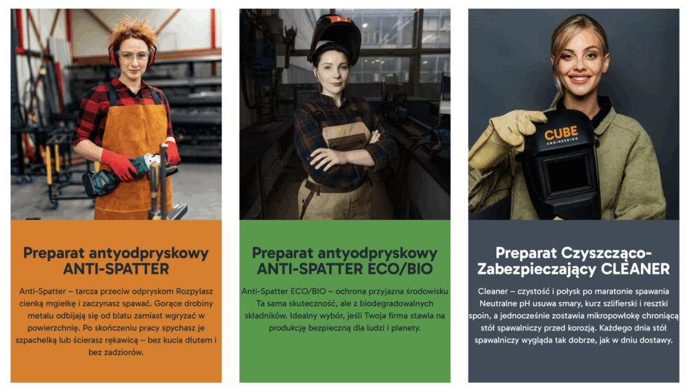 Podczas spawania powstają gorące drobiny metalu, które mogą trwale przyklejać się do powierzchni stołu, powodując mikrouszkodzenia i utrudniając precyzyjne ustawianie elementów. Regularne stosowanie środków antyodpryskowych, jak ANTI-SPATTER czy ANTI-SPATTER ECO/BIO, tworzy na powierzchni cienką, niewidoczną warstwę ochronną. Dzięki niej odpryski nie przywierają do blatu, a ich usunięcie po zakończonej pracy zajmuje dosłownie chwilę i nie wymaga kucia dłutem czy agresywnego skrobania. W praktyce przekłada się to na wyraźnie mniejszą liczbę przerw technologicznych i płynniejszy cykl produkcyjny – stanowisko robocze pozostaje czyste i gotowe do kolejnych zadań praktycznie od razu. Wolna od zanieczyszczeń powierzchnia stołu to także większe bezpieczeństwo pracy – mniejsze ryzyko przesunięcia się elementów podczas spawania.